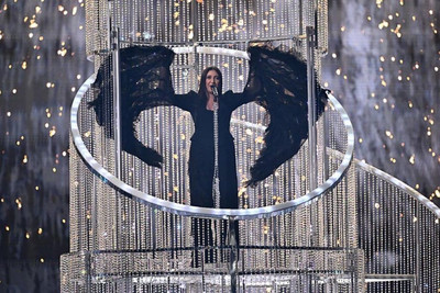Юваль Рафаэль, представляющая Израиль, во время финала конкурса песни Евровидение в Базеле, Швейцария. Она заняла 1 место в зрительском голосовании, но уступила конкурсантке из Австрии.